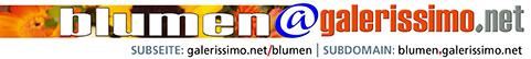(Schreiner) oder einen Blumenalden, ... Wir finden auch für Sie eine Erfolgreiche Lösung! ![]() Mit Domainendungen für den deutschsprachigen Raum und mit .com / .net international! Sie buchen / nutzen günstig und so lange Sie möchten! Nur eine eMail Adresse. Mehr Information > inkl. Landingpage als Subseite. Mehr Information > mit eigener Subdomain für eine autonome Homepage. Mehr Information > Landingpage Factsheet Semantische Domains wie galerissimo (z. B. .com) wirken in Verbindung mit angebotsbezogenen Landingpages / Factsheets oft kleine Wunder. |